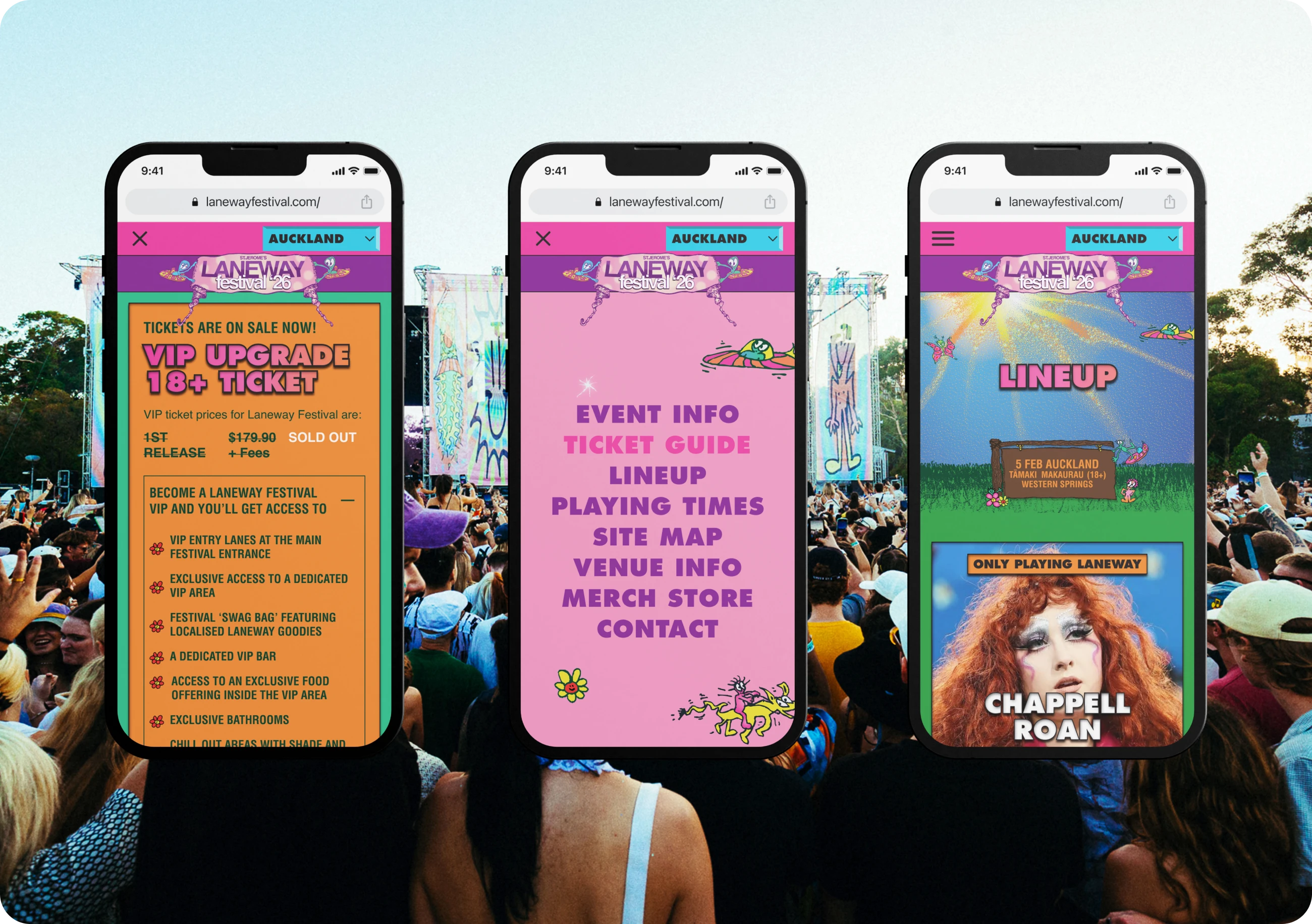 Laneway’s audience spans a wide demographic, from first-time festivalgoers to long-term attendees. The experience needed to support fast, confident decision-making with no dead ends.